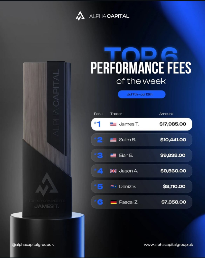 Each week, the firm continues to shine a spotlight on its top traders, reinforcing its commitment to recognizing talent and promoting a results-driven culture. With such consistent support and performance-based rewards, Alpha Capital Group remains a leading name in the prop trading space.