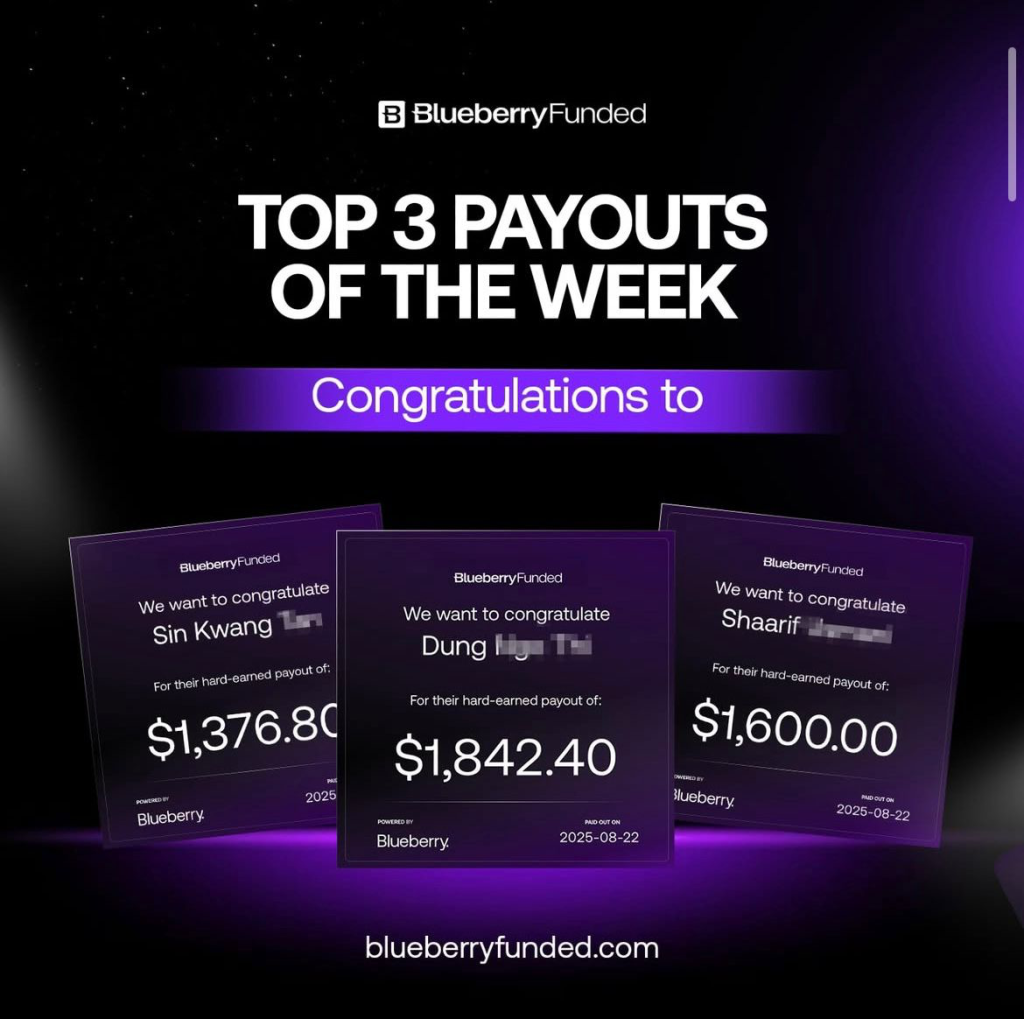 Transitioning from one payout report to the next, Blueberry Funded continues to cultivate a competitive yet supportive environment where traders strive to reach new milestones. Ultimately, the recognition of this week’s top three performers reflects the firm’s broader mission: empowering traders to achieve real financial growth through skill, strategy, and perseverance. As Blueberry Funded emphasizes in its updates, “Real traders. Real payouts.” remains more than a slogan; it is a standard that the firm continues to uphold.
