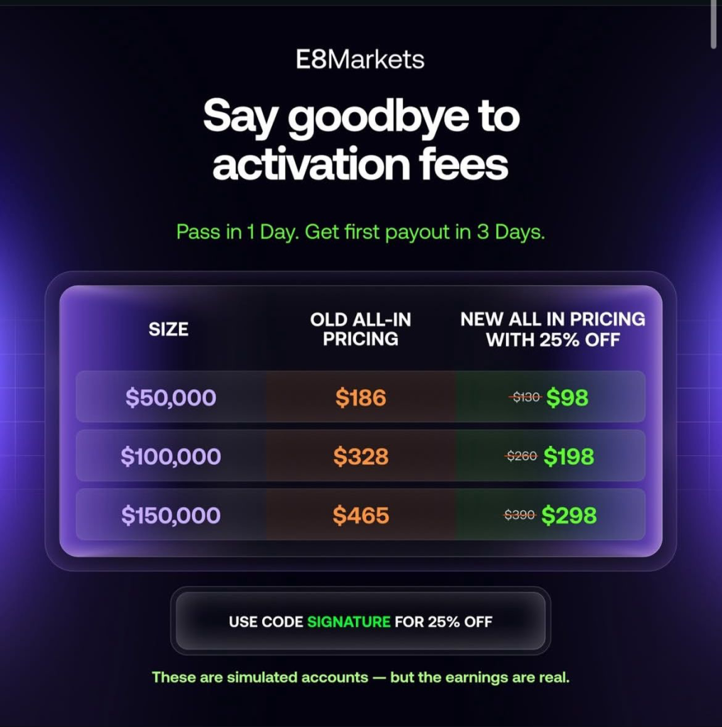 To make the program even more attractive, E8 Markets now offers a 25% discount on all futures accounts using the code “SIGNATURE.” This discount applies across account sizes, including $50,000, $100,000, and $150,000 simulated accounts, significantly reducing enrollment costs for traders eager to enhance their skills. E8 Markets emphasizes that these accounts are simulated, designed primarily for skill training, data collection, and analytical modeling.