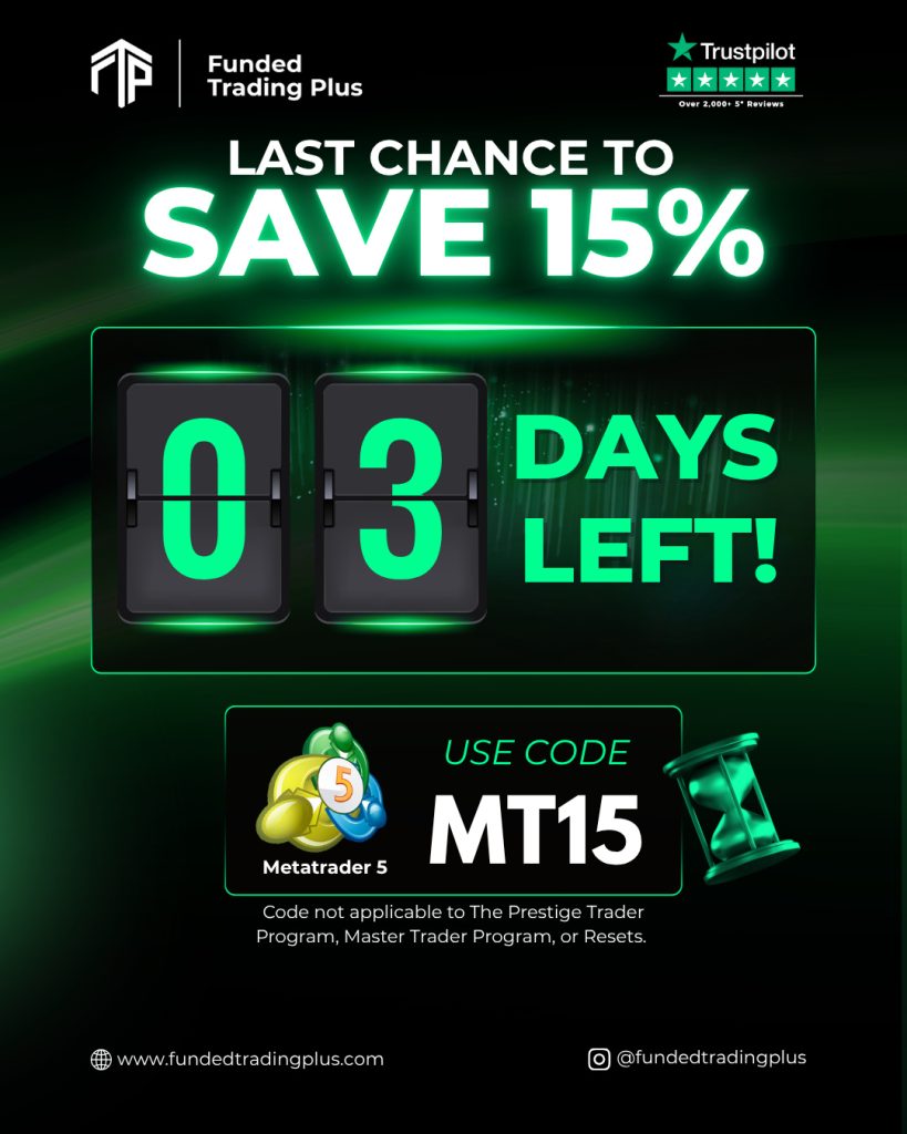 Funded Trading Plus has launched a limited-time promotion to attract both new and returning traders. With only three days remaining, the firm is encouraging traders to take advantage of a 15% discount on its popular Funded Trading Plus program.