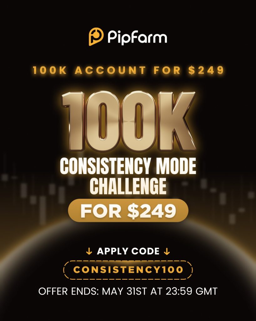 PipFarm has introduced an exciting new offer for traders eager to take on the $100K Challenge. Traders can now participate in the 100k Consistency Mode challenge for only $249 by using the exclusive code CONSISTENCY100.